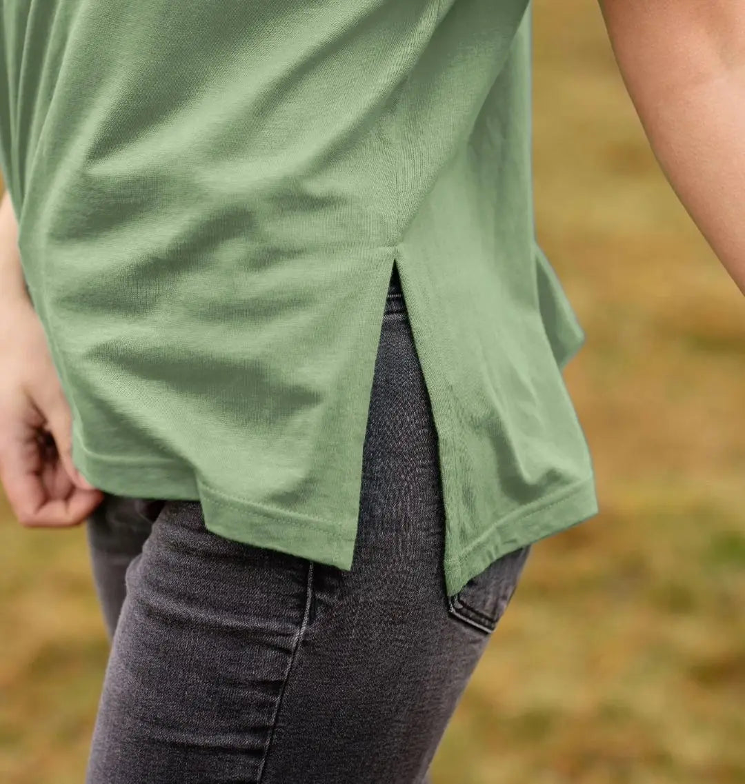 Certified organic cotton relaxed fit t-shirt, 155 gsm. Features side split and rolled sleeves. Wash cool, hang dry. GM-free. Not tested on animals. Does not contain animal-derived products. Material made in a renewable energy-powered factory, audited for a wide range of social and sustainability criteria.