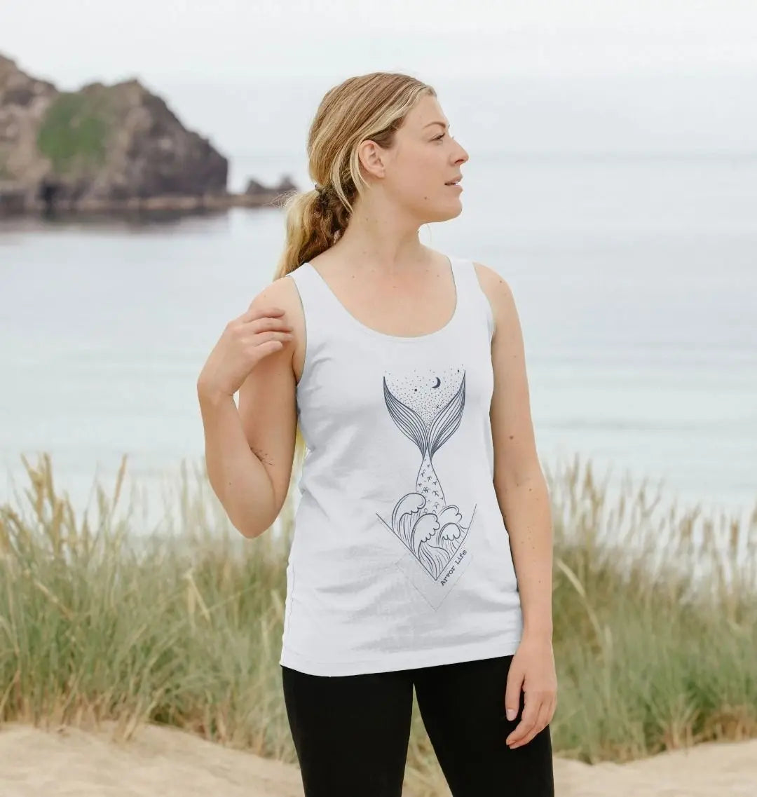 The Merfolk Women’s Vest Top is made for those who feel most at home in the sea. Featuring a graceful mermaid design across the front, this lightweight, breathable vest is the perfect companion for beach days, coastal escapes, and summer adventures. Crafted from eco-friendly organic cotton or recycled fabrics, it’s a sustainable way to show your ocean spirit.