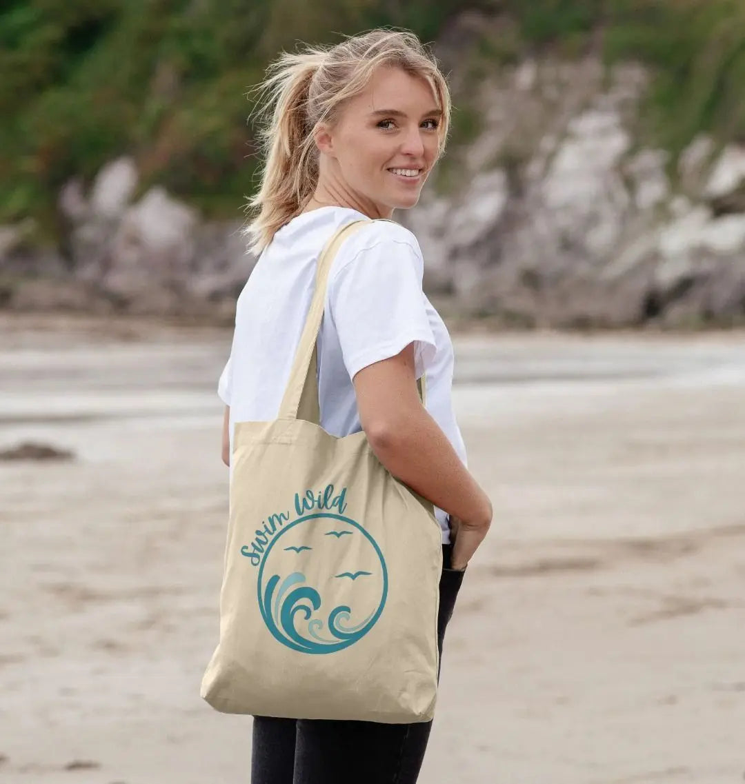 Introducing our best-selling Swim Wild tote – the perfect companion for your beach days, poolside adventures, or trips to the lake. This tote is made for those who embrace the freedom of wild swimming. Whether you're carrying your swim gear, snacks, or beach essentials, this durable tote keeps everything organized while reflecting your love for the water. Stay ready for your next dip and carry a reminder to swim wild and free wherever you go.