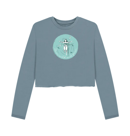 Certified organic cotton cropped boxy jumper with a raw hem finish, 300 gsm. Wash cool, hang dry. GM-free. Not tested on animals. Does not contain animal-derived products. Material made in a renewable energy-powered factory, audited for a wide range of social and sustainability criteria.