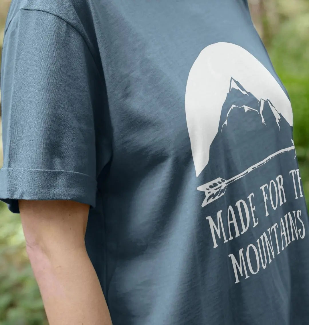 Embrace the mountain spirit with our 'Made for the Mountains' tee. Whether you're trekking through rugged trails or soaking in the wild landscapes, this tee is the perfect companion for your adventures. Featuring a large motif on the front, it's a true celebration of the great outdoors.