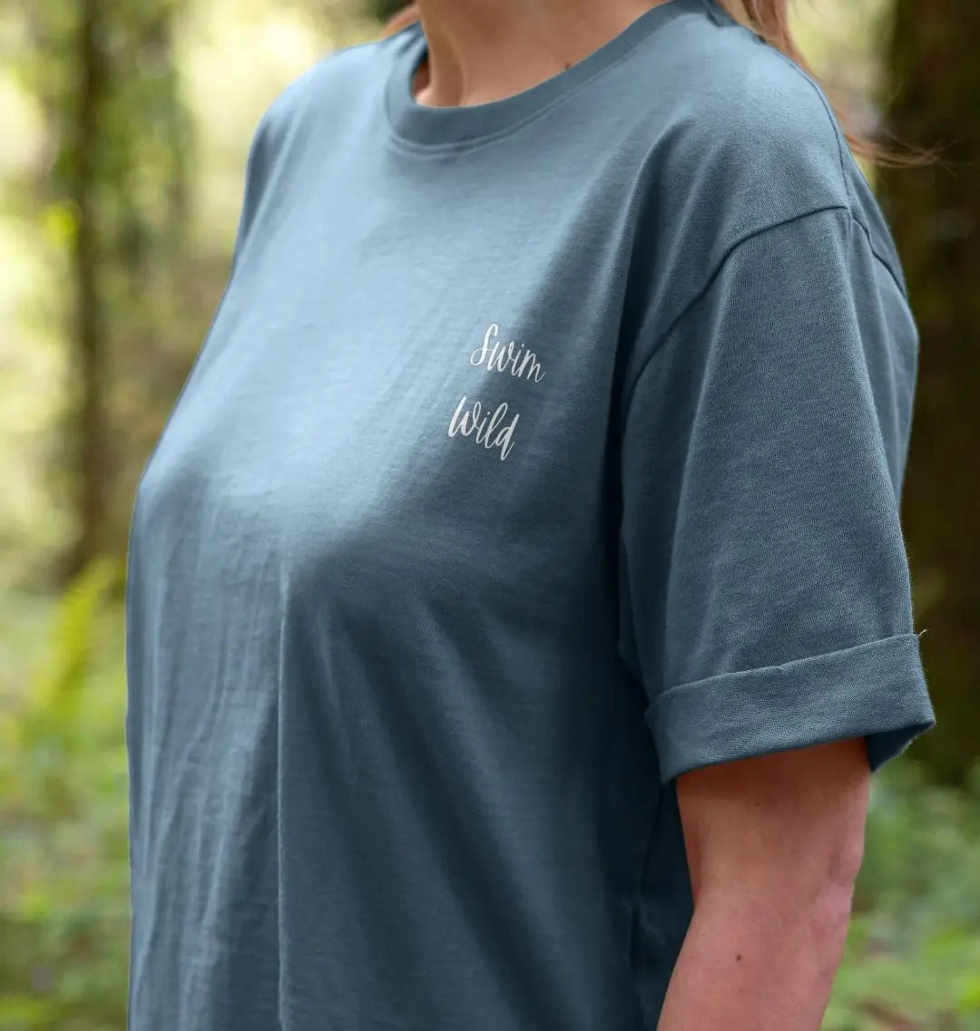 This 'Swim Wild' organic cotton t-shirt is perfect for wearing to your favourite swim spot, exploring the countryside and coasts and sharing your love of the water.