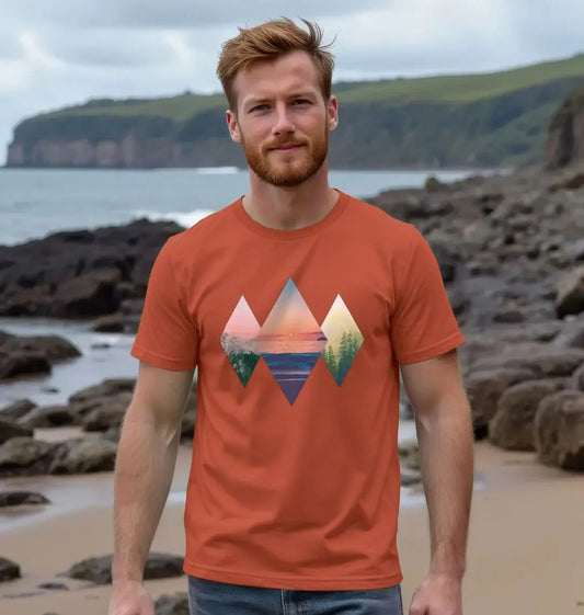 Sustainable men’s T-shirts made from organic and recycled fabrics, designed for comfort, durability, and everyday adventure.