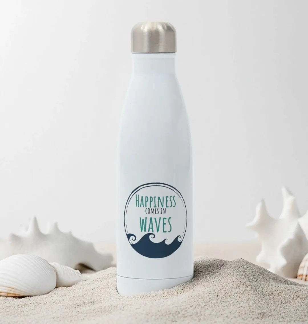 Introducing the Happiness Comes In Waves bottle – the perfect way to stay refreshed while riding the highs of life’s adventures. This durable, insulated bottle keeps your drinks cold or hot for hours, making it ideal for beach days, coastal hikes, or simply enjoying the calming rhythm of the waves. With its uplifting design, it serves as a reminder that happiness flows naturally, just like the tides. Whether you're by the water or on the go, this bottle is your companion for all things sunny and positive.