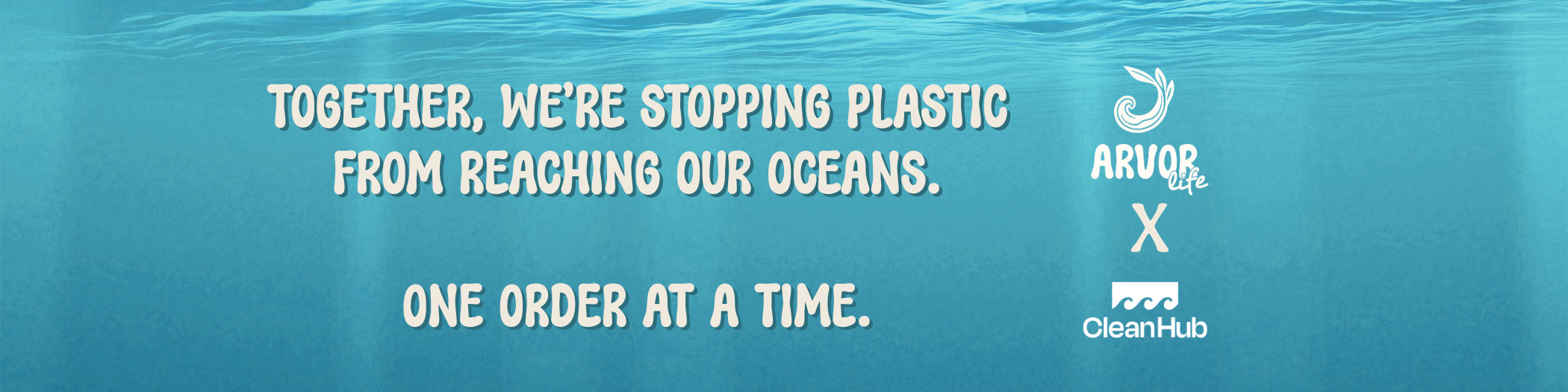 Every product you buy from Arvor Life funds the removal of 1lb of ocean-bound plastic - the equivalent of 30 plastic bottles.