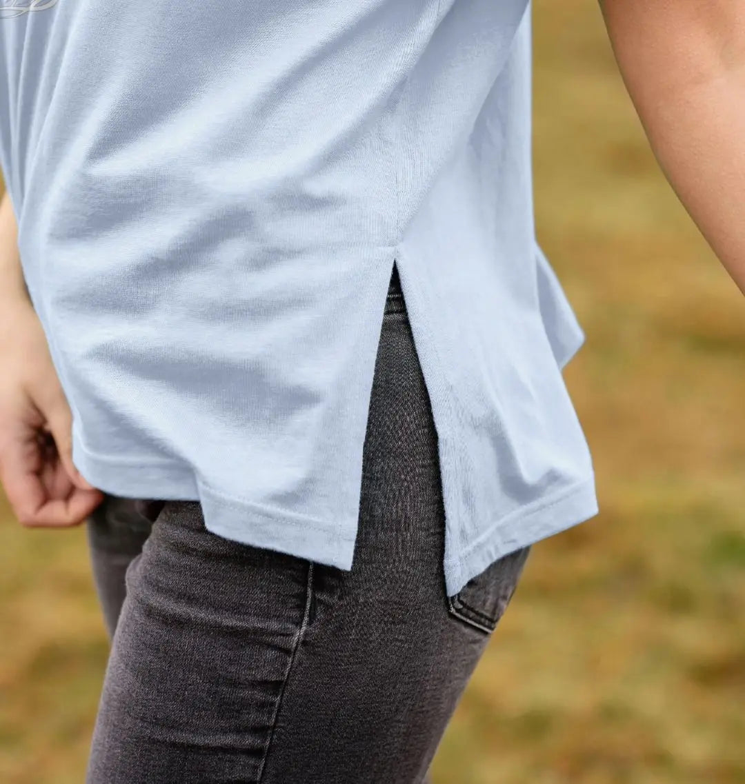 Certified organic cotton relaxed fit t-shirt, 155 gsm. Features side split and rolled sleeves. Wash cool, hang dry. GM-free. Not tested on animals. Does not contain animal-derived products. Material made in a renewable energy-powered factory, audited for a wide range of social and sustainability criteria.